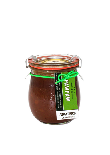 A very special limited edition jam! Our pawpaw jam includes brown sugar, ginger, and spices that complement the sweet fruity flavor!